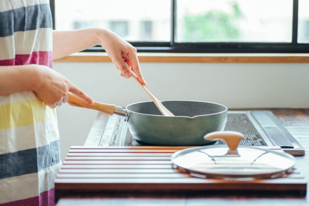1. 鍋で水+ココナッツミルクを温める